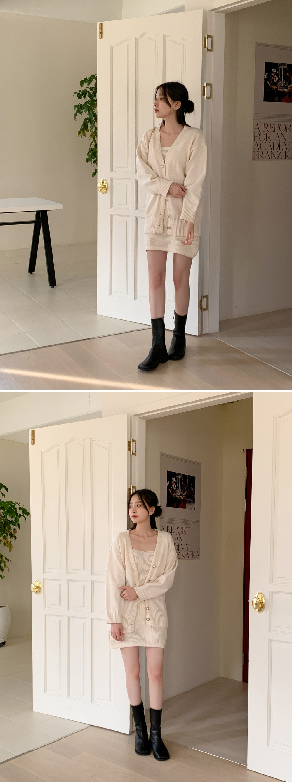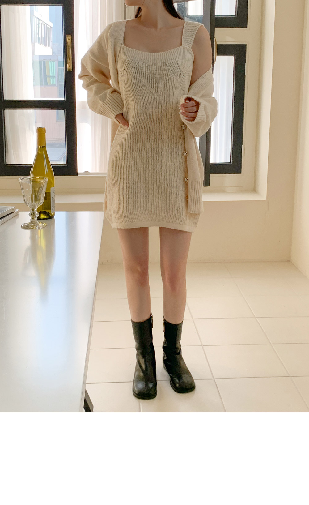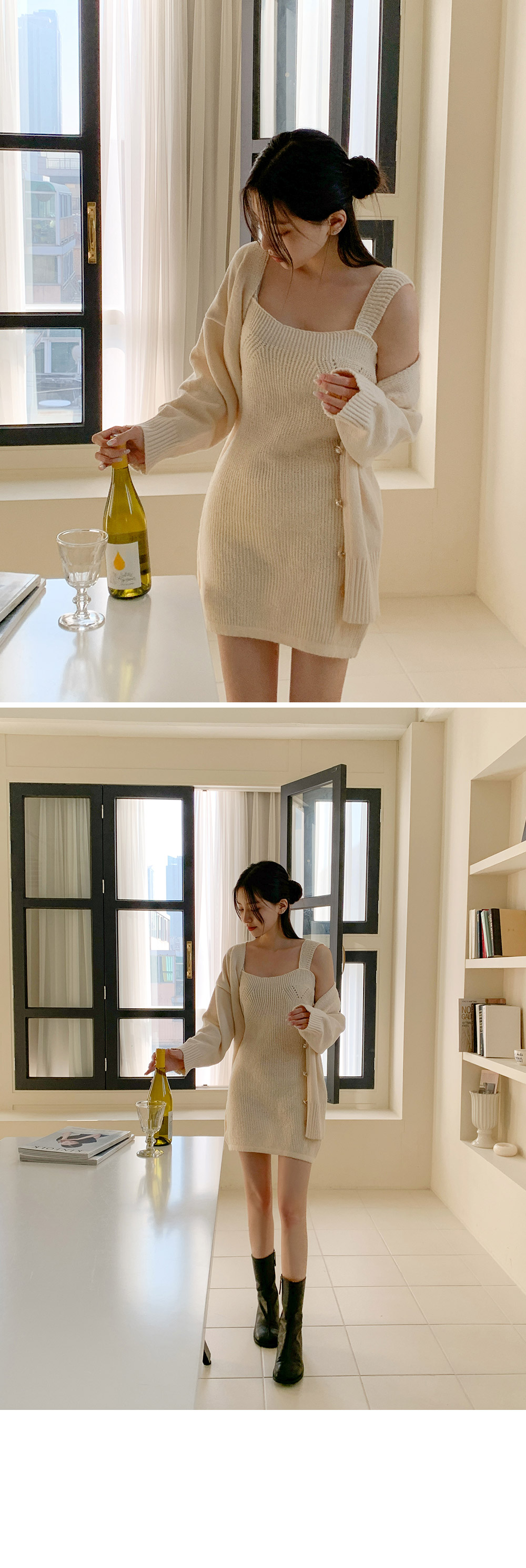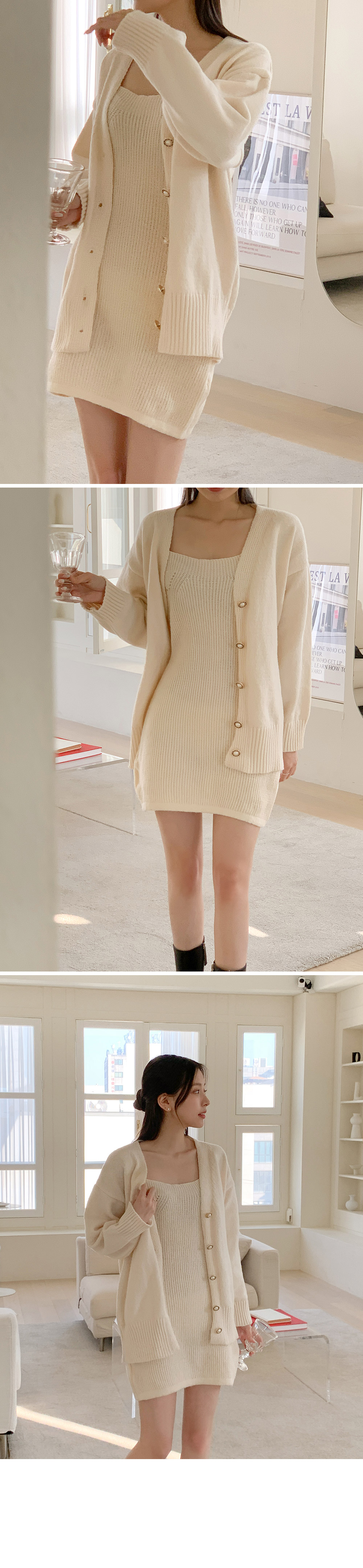 [SET] 모닛 니트 가디건 원피스 세트♡韓國女裝連身裙